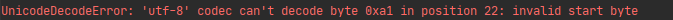 UnicodeDecodeError: 'utf-8' codec can't decode byte 0xa1 in position 22: invalid start byte